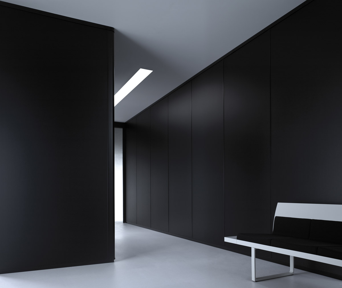 In order to achieve the perfect aesthetic integration of all spatial elements, the programme includes the D82 cover system for walls and columns. Its telescopic system is capable of absorbing uneven wall surfaces.