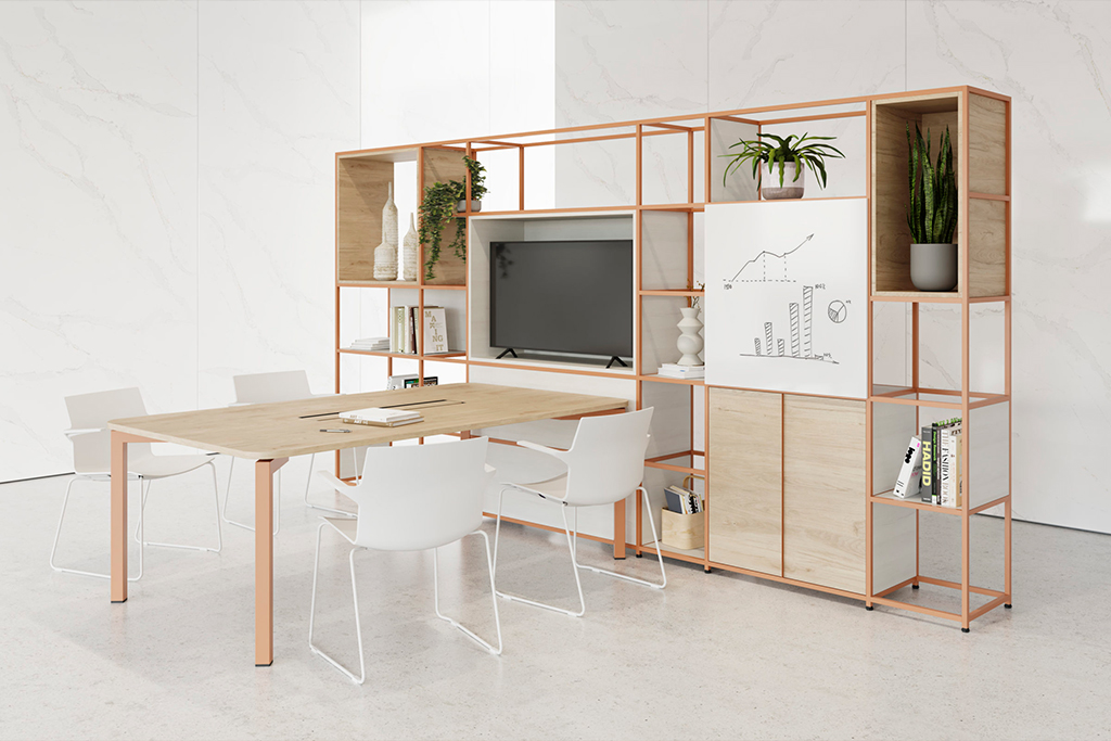 Almacenaje y conectividad son dos de los principios sobre los que se basa el diseño de nuestras propuestas de mobiliario sostenible Shelving.