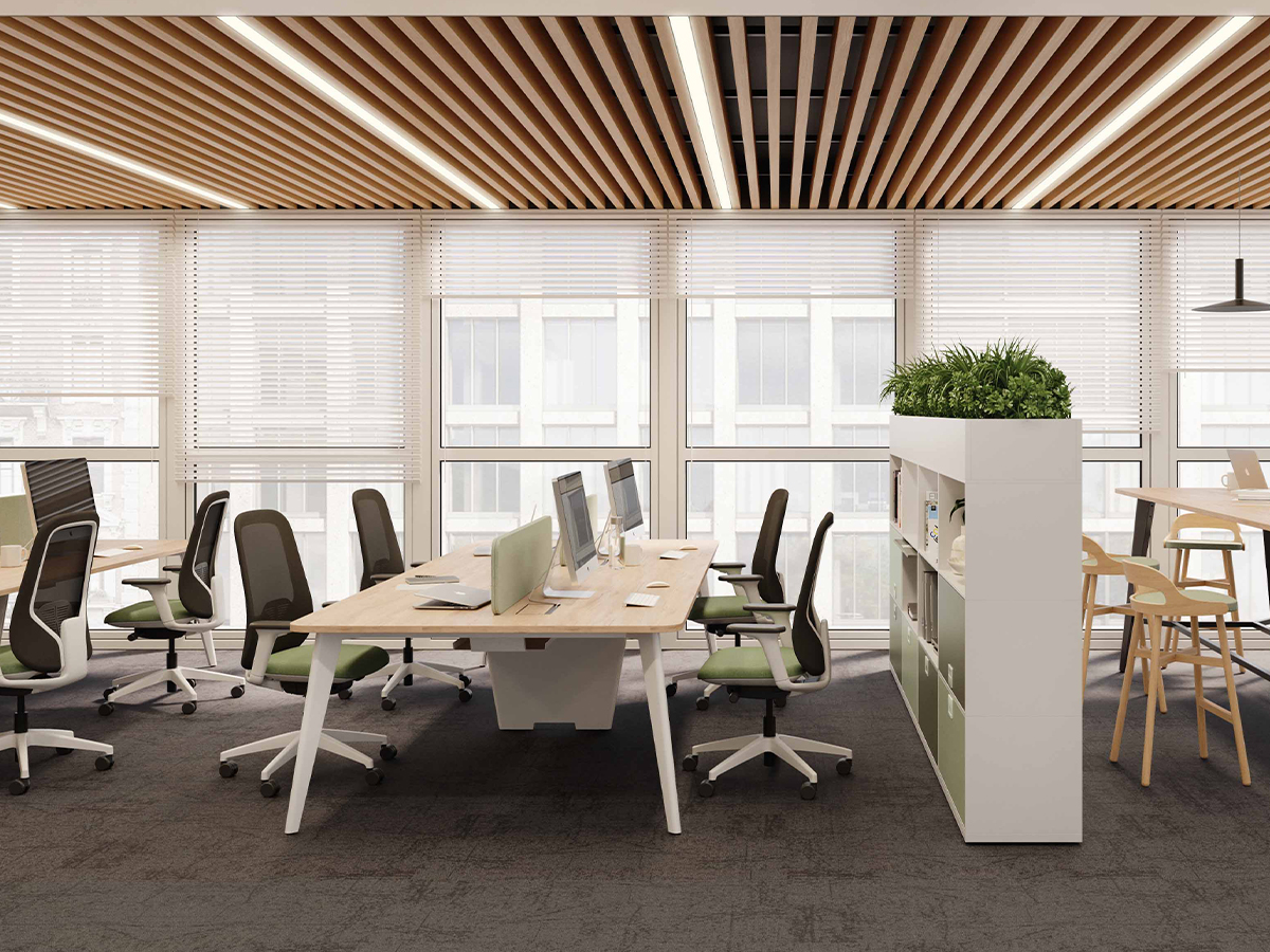 - BE WOOD: parfait pour les environnements organiques et sains, car il est capable de fusionner le design et l’espace naturel dans les bureaux contemporains.