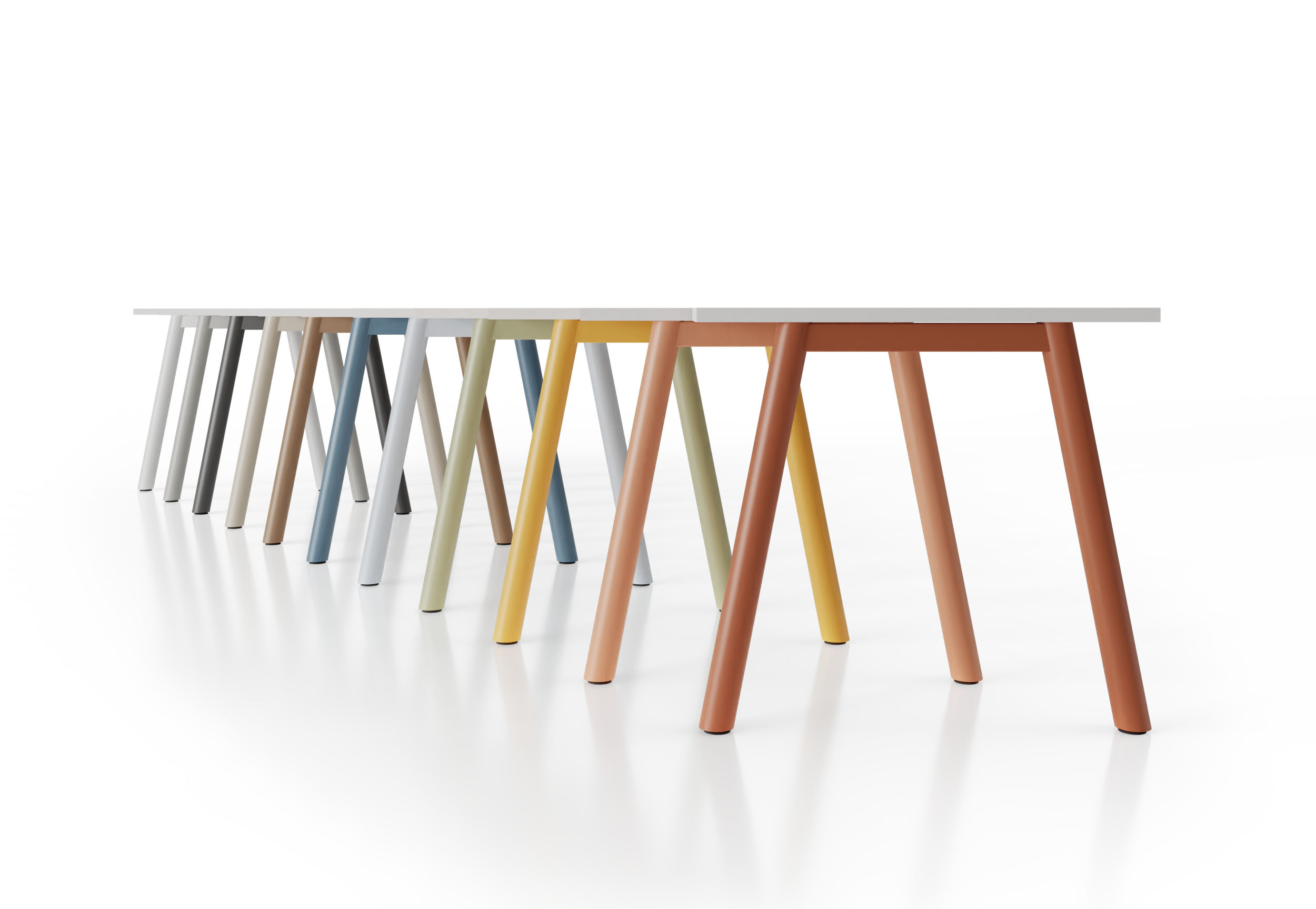 Además, ABA permite una alta personalización, combinando distintos acabados en patas y tablero para adaptarse a diferentes estilos y necesidades de interiorismo. Esta versatilidad la convierte en una pieza ideal tanto para despachos como para zonas comunes de reunión o colaboración.
